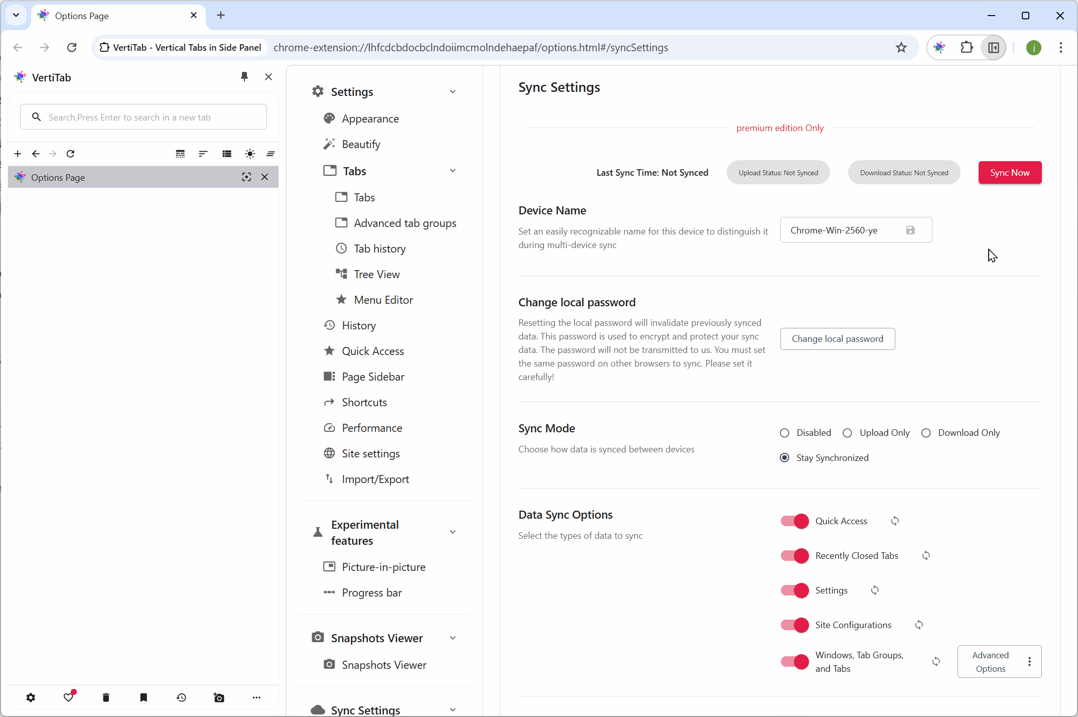 VertiTab salva automaticamente le istantanee delle tue schede, permettendoti di ripristinare facilmente tutte le schede anche se il browser si chiude inaspettatamente. Questa funzionalità è completamente gratuita e funziona automaticamente - non c'è bisogno di preoccuparsi della perdita di dati!